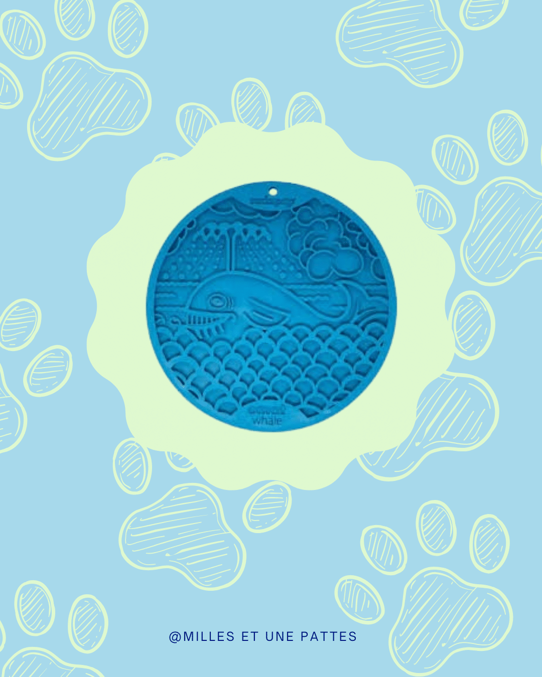Ce tapis baleine à lécher est doté de ventouses à l’arrière et est parfait à utiliser lorsque votre chien a besoin d’un bain.